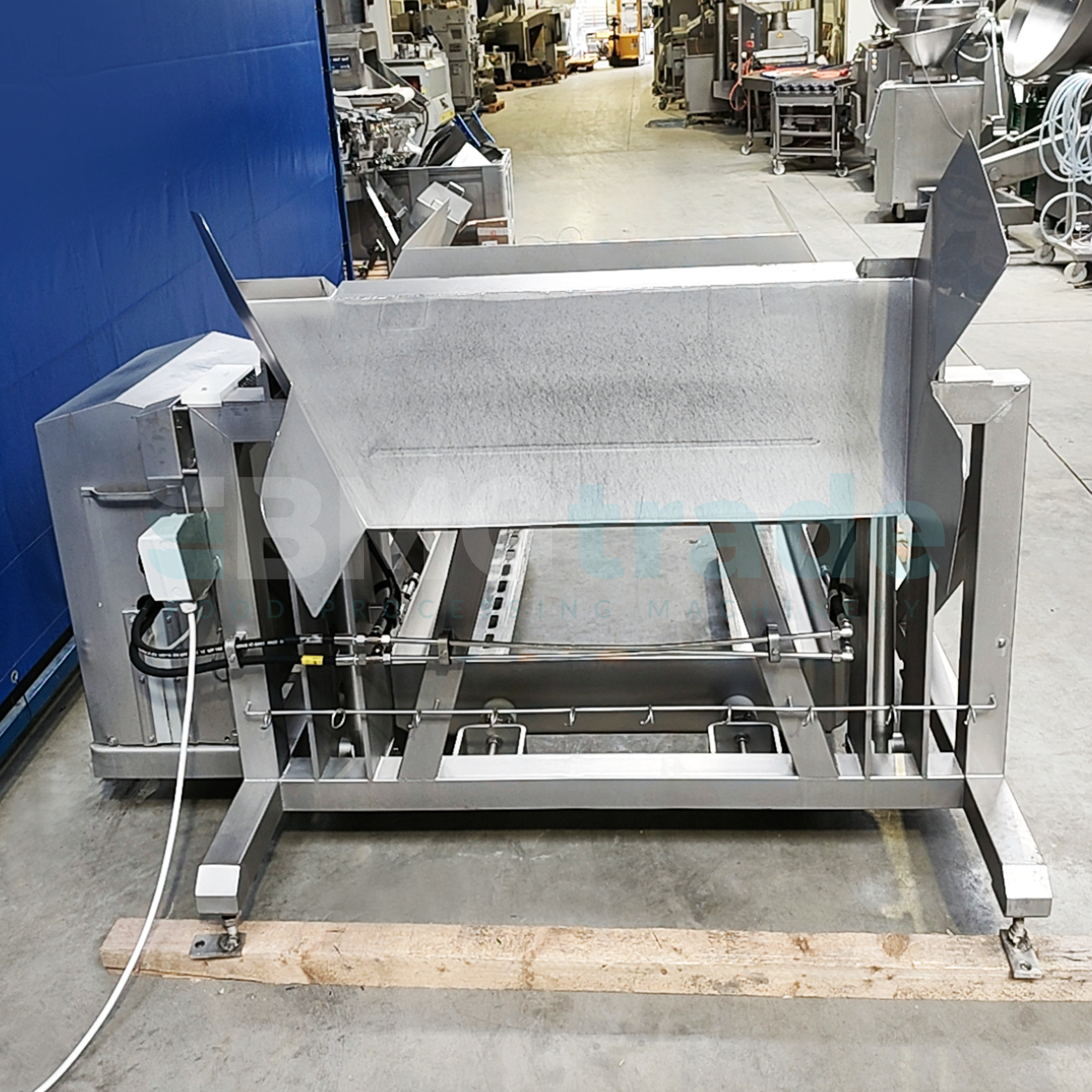 The CARNITECH SL120 bin tipper is a robust and reliable device designed for lifting and emptying containers with raw materials in food processing plants. Manufactured by Carnitech in 2005, the machine is characterised by high quality workmanship, durability and safety of use. Ideal for use with loading machines, mixers, cutters and production lines.