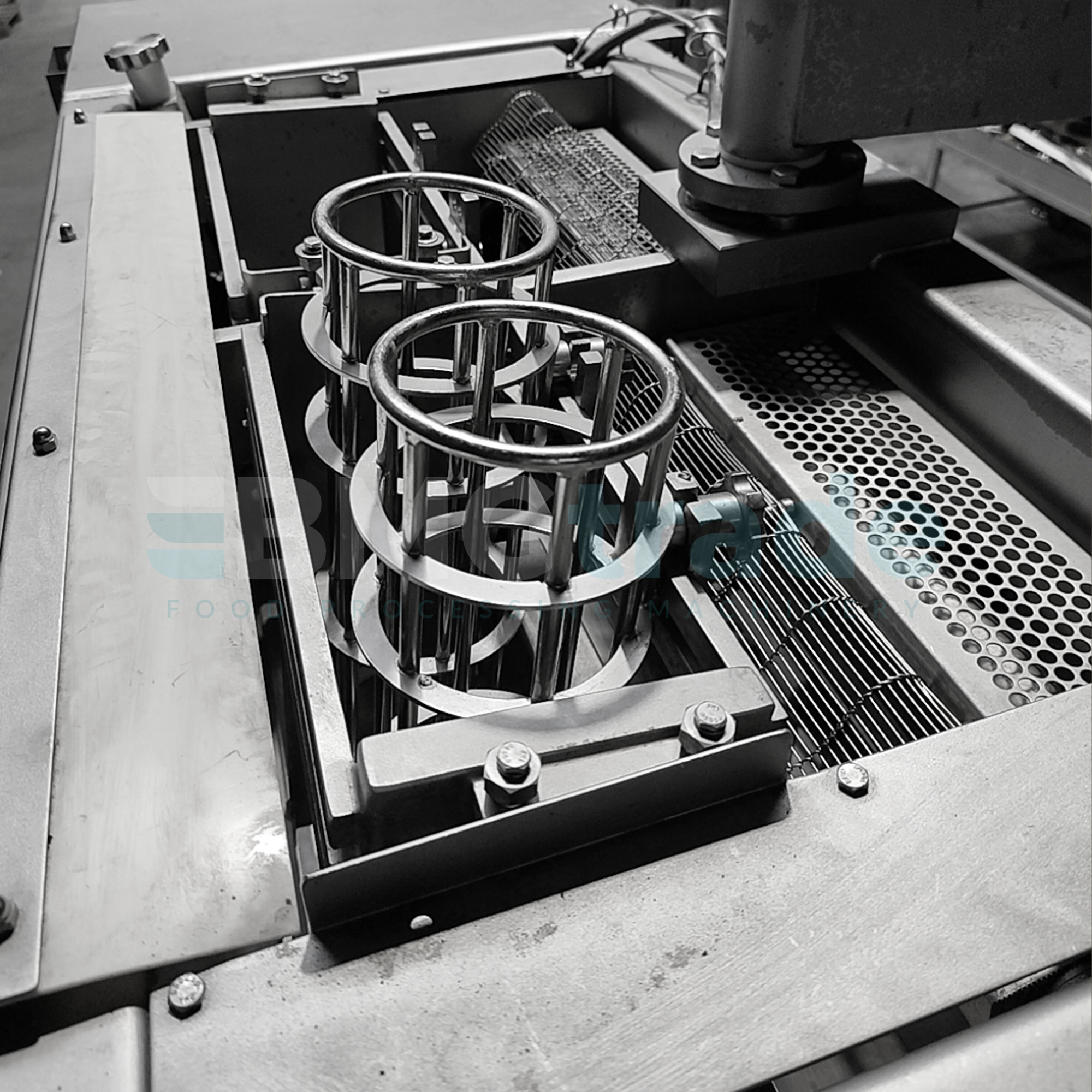 The machine has been designed as a multi-track slicer/applicator, with the possibility of configuring the number of heads and tracks, the cutting zone, orientation (left- or right-handed version) and the support frame. Continuous product loading with gravity feeding and an optional low-level sensor reduces downtime and maintains high cutting quality. The hygienic design ensures quick and effective cleaning in accordance with food industry requirements.