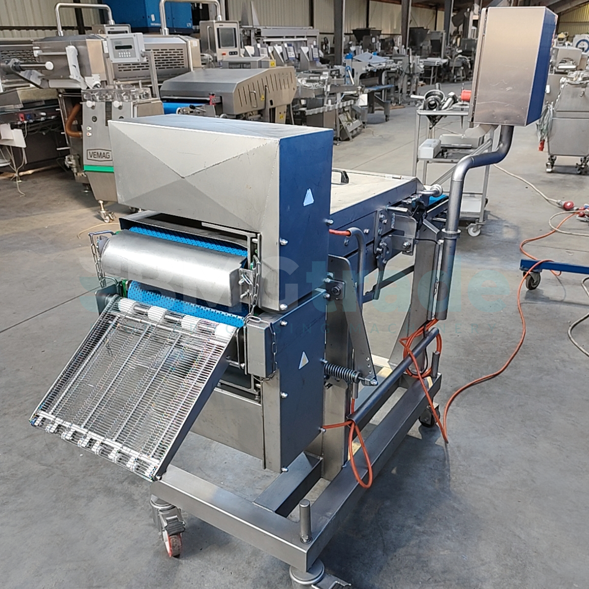 The RMP 400 model was designed to increase efficiency and achieve a uniform product thickness before further processing stages, such as breading, frying, or freezing. The machine is compact in size, making it easy to integrate with other equipment in the production line.