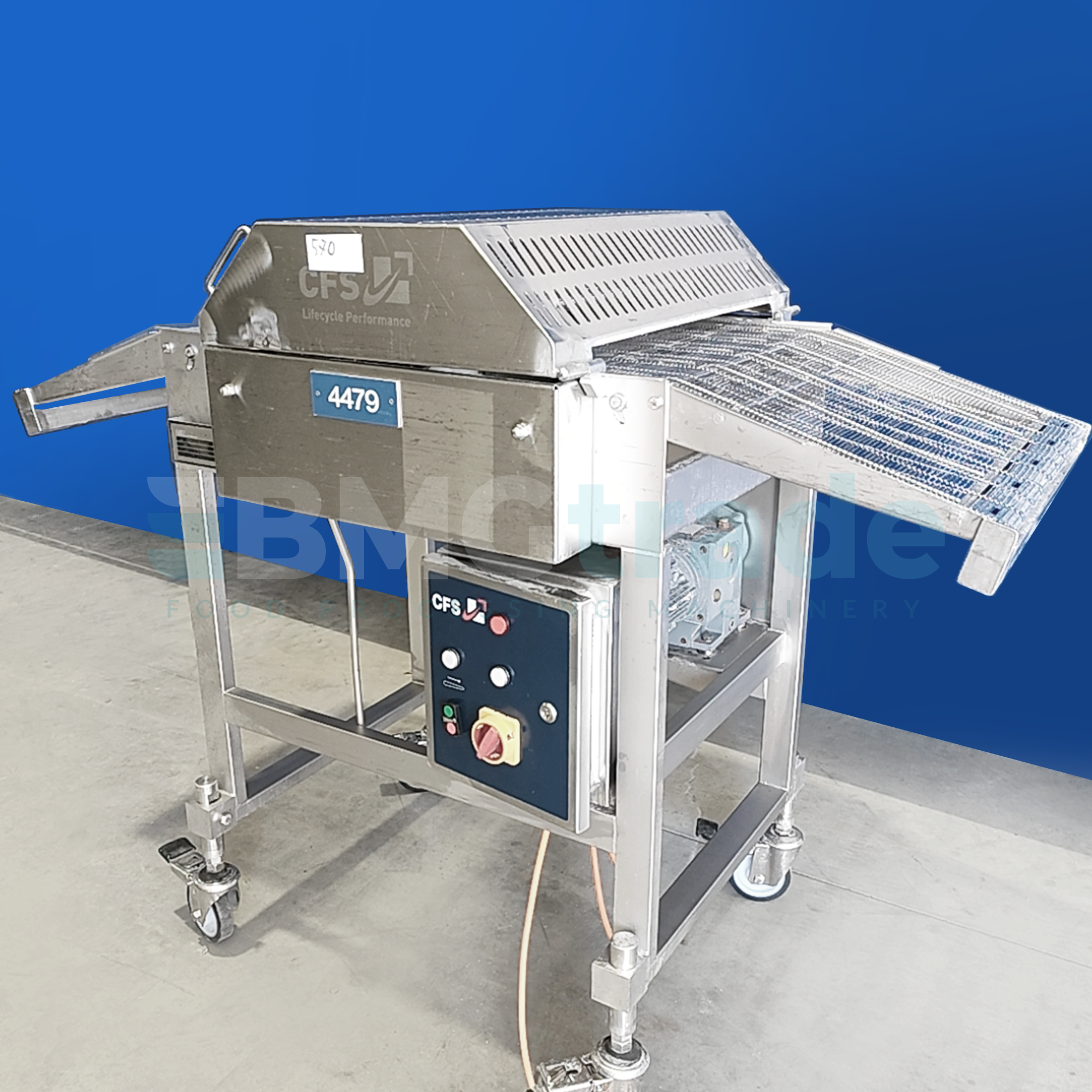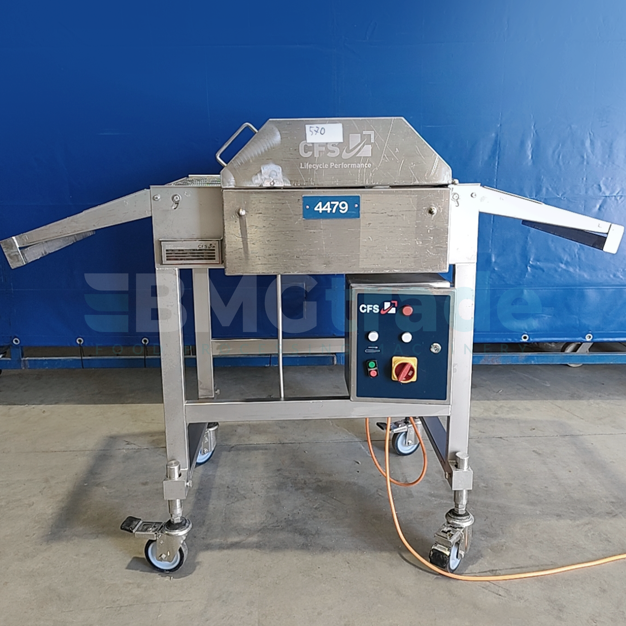 Manufactured by CFS Bakel B.V. in 2010. With an installed power of 0.55 kW, it is an energy-efficient and practical solution for integration into existing meat processing lines or as a stand-alone workstation. Its solid construction and machine weight of 160 kg ensure reliable operation in industrial environments.
