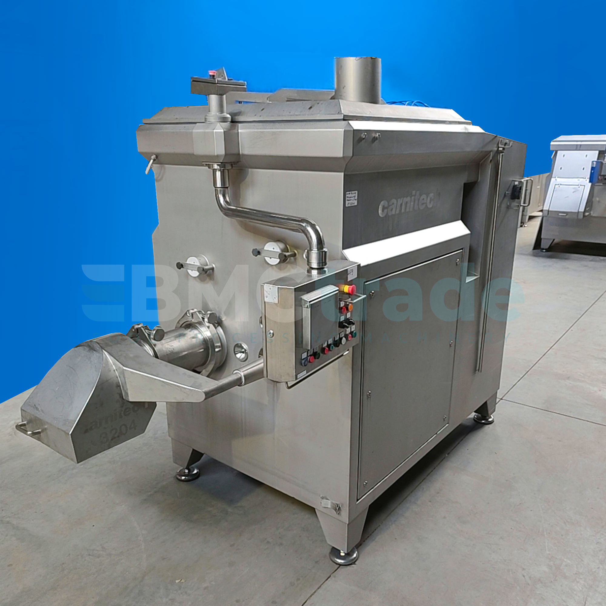 The CARNITECH CT3204 Mixer-Grinder (manufactured in 2005) is an efficient machine for the meat industry, combining mixing and grinding functions in one device. It is ideal for plants producing sausages, burgers, nuggets, and other meat products that require thorough mixing of the stuffing and a consistent texture.