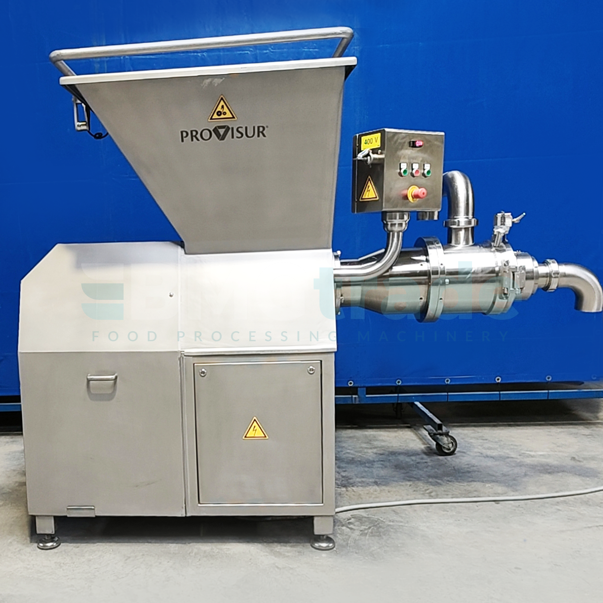 Provisur AM2C Beluga SD1830separator features cutting-edge separation technology combined with a low RPM, single screw feed system, ensuring delicate handling of raw materials. It provides a high-quality, ground product while keeping the fibers and textures intact.