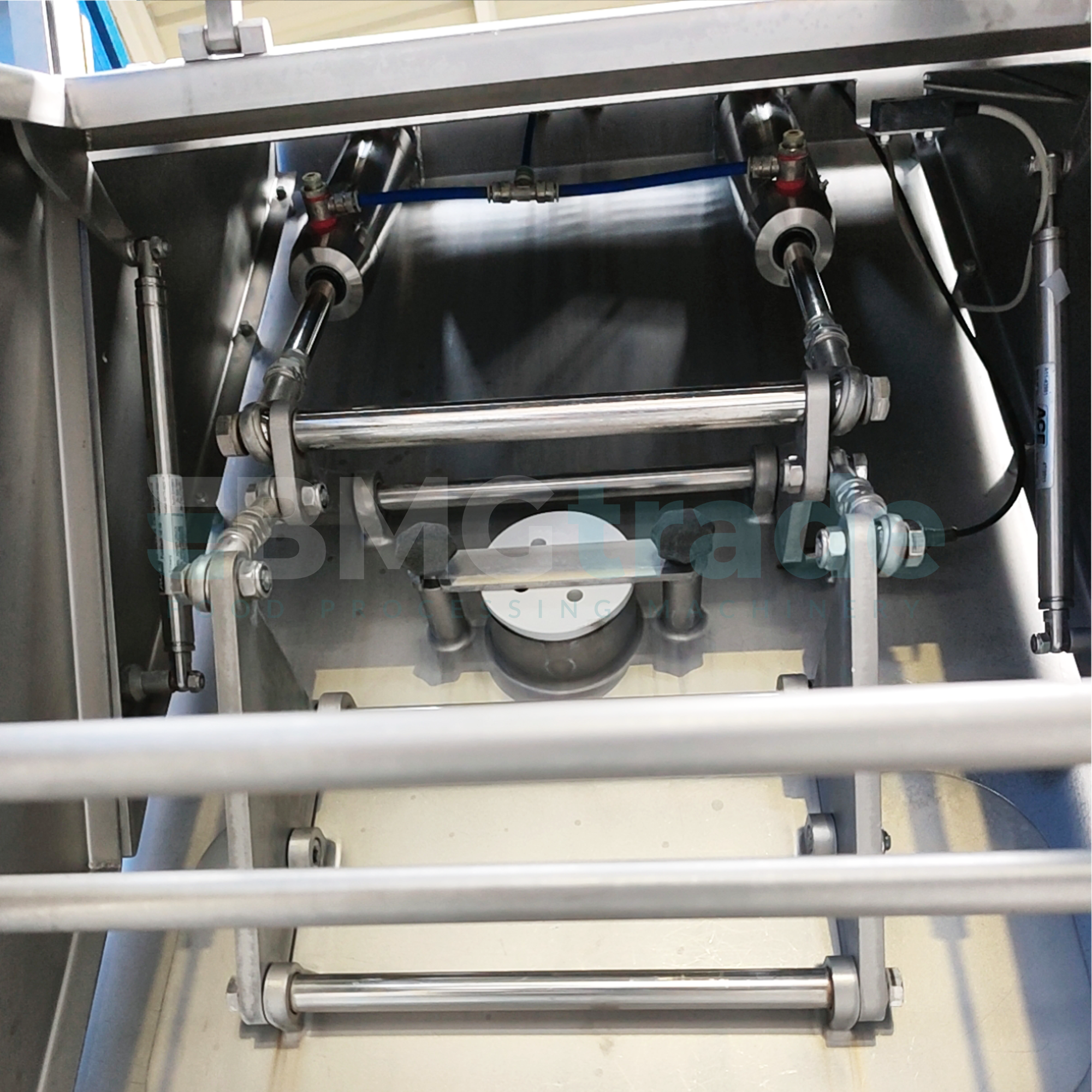 The mixer is powered by 3x400V, 50Hz and has a solid, hygienic stainless steel construction, adapted to work in multi-shift mode. The large working chamber and well-thought-out design facilitate the loading and unloading of raw materials, and its compact dimensions allow for easy integration into the existing technological line.