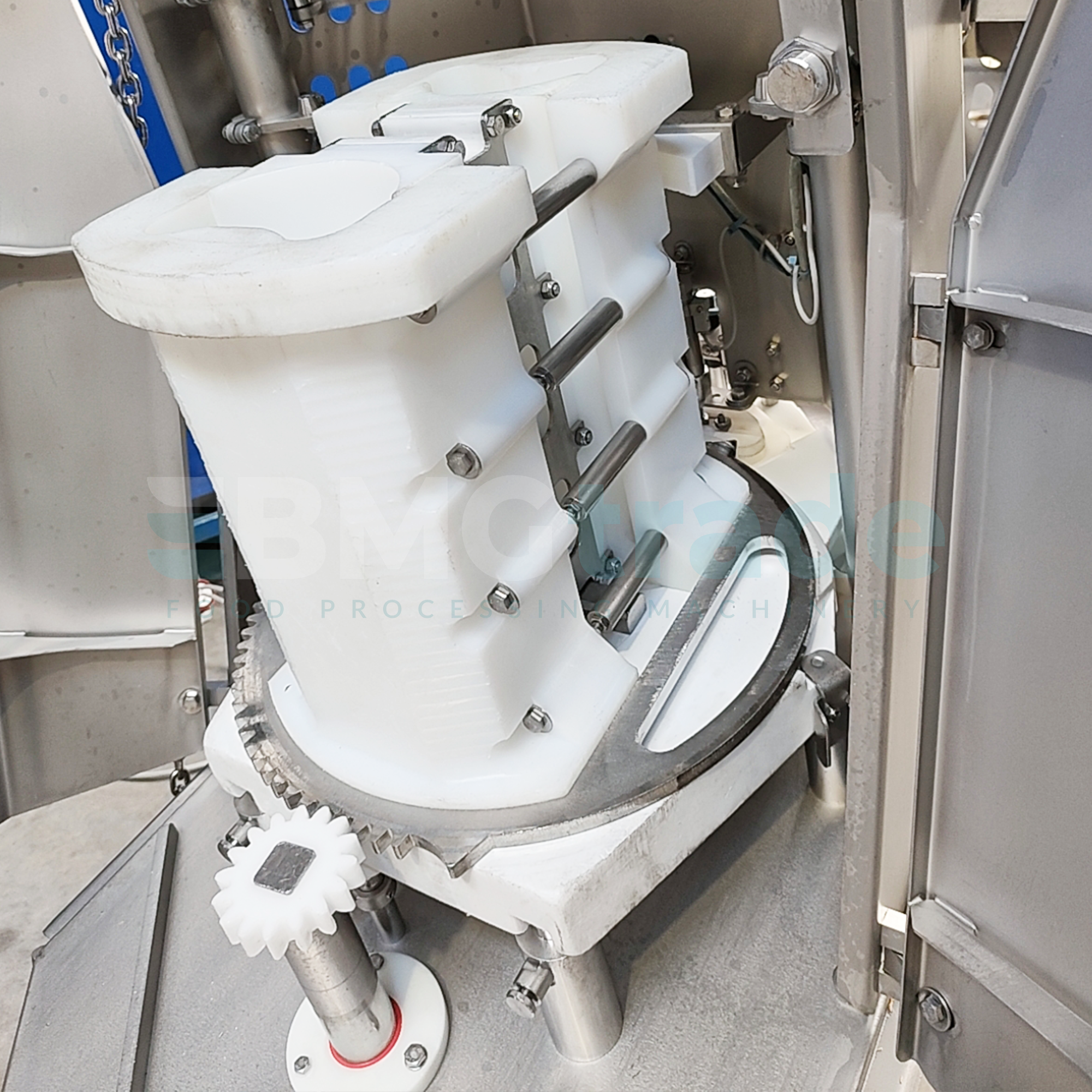La máquina está equipada con una cinta plana Intralox S1100 con una anchura de 253 mm y una longitud de 3100 mm, lo que garantiza un transporte fluido del producto y unos altos estándares de higiene. La fuente de alimentación de 3×380-480 V y la potencia de 9,5 kW garantizan un funcionamiento eficiente incluso en condiciones de producción intensiva.