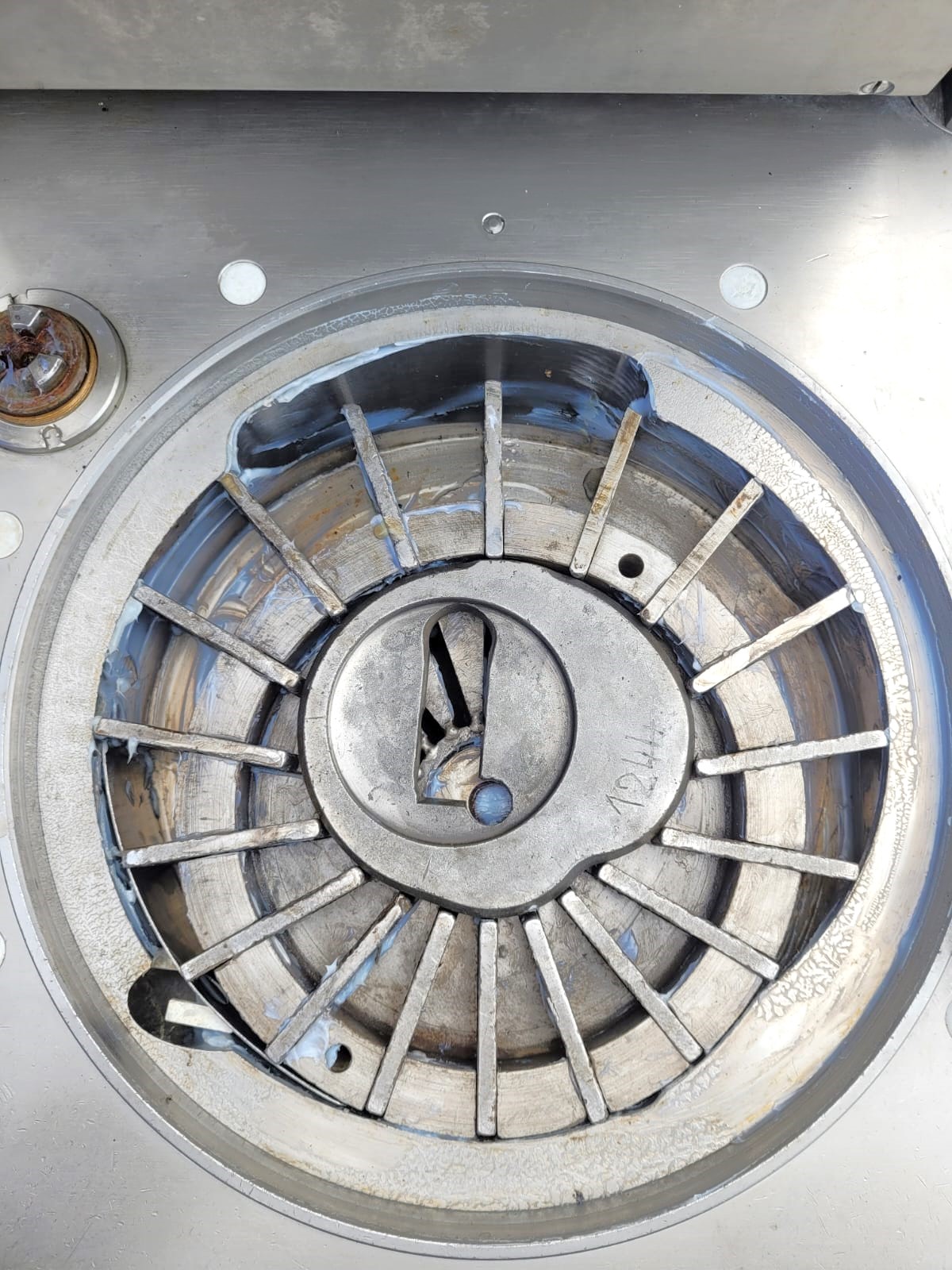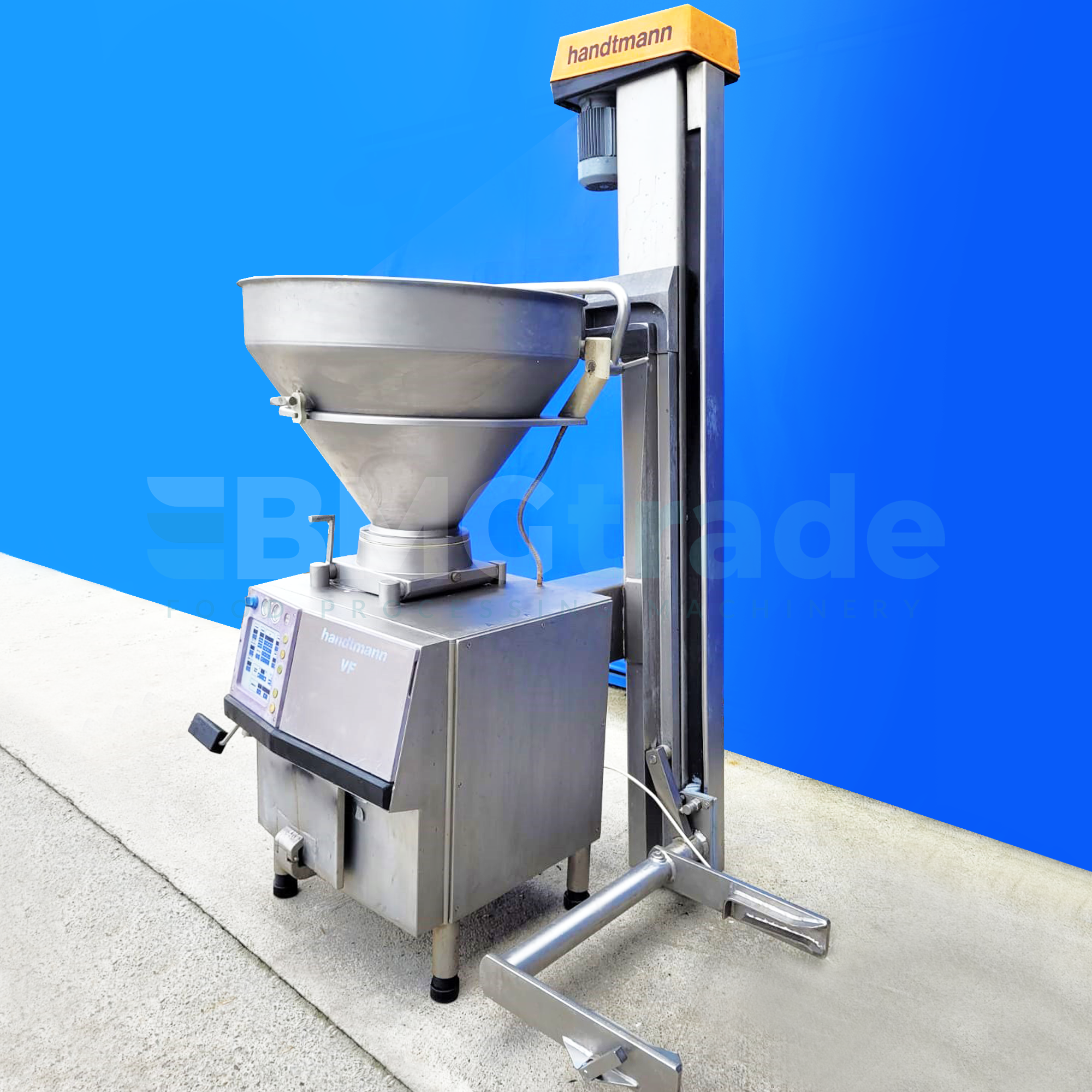 Embutidora usada HANDTMANN VF 300B es un dispositivo con una eficiencia muy alta, hasta 10 000 kg/h. Rango de porcionado de 5 a 100 000 g. El dispositivo se controla mediante un panel operativo fácil de usar. La máquina tiene carga para contenedores de carne estándar de 200 l.
