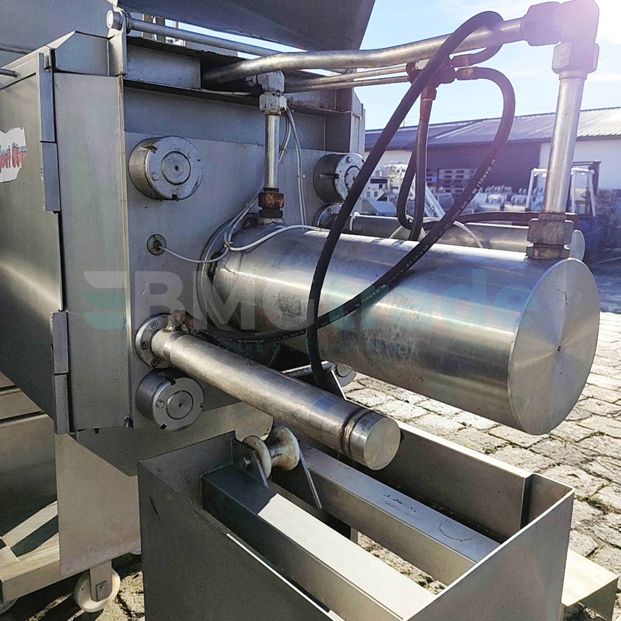 En un dispositivo de alimentación especial, los huesos se introducen en la cámara de prensado y se compactan previamente. A continuación, un sistema hidráulico lineal separa la carne avanzada de los huesos y la empuja a través de un filtro perforado (estándar de 8 mm). El resultado es una masa cárnica de alta calidad, manteniendo un bajo contenido en calcio y un aumento mínimo de la temperatura durante el proceso, lo que tiene un efecto positivo en la calidad y la funcionalidad del producto final.