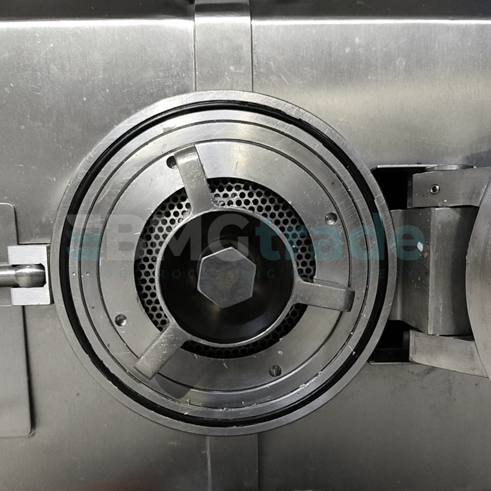 W zestawie znajduje się jedno sito o średnicy 140 mm z otworami 3 mm, zapewniające bardzo drobne rozdrobnienie i gładką strukturę produktu. Kompaktowe wymiary 1600 x 1100 x 1200 mm ułatwiają ustawienie maszyny w istniejącej hali produkcyjnej.
