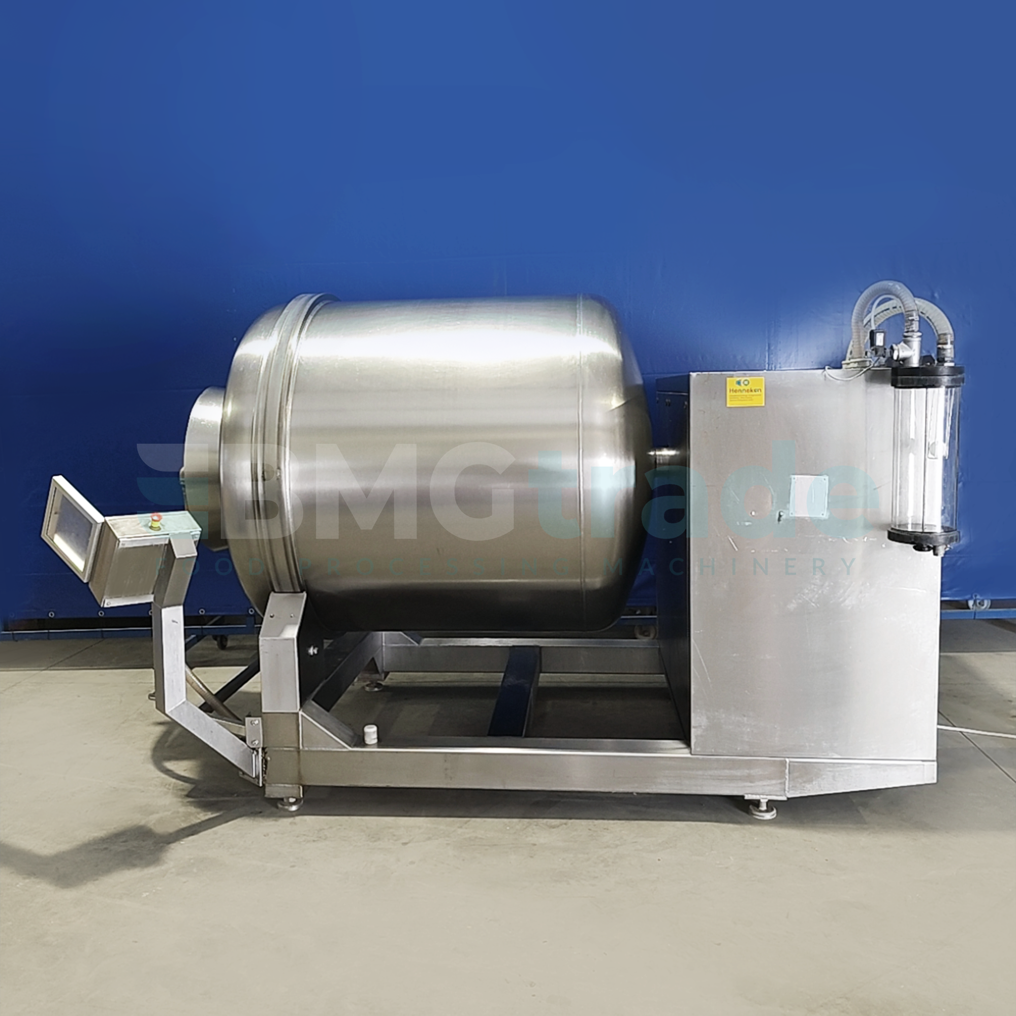 Oferujemy masownicę próżniową HENNEKEN typ B6 z 2007 roku, przeznaczoną do profesjonalnego masowania, peklowania i marynowania mięsa w zakładach mięsnych oraz przetwórniach spożywczych. To solidna maszyna do poprawy kruchości, soczystości i równomiernego rozprowadzenia solanki oraz przypraw w produkcie, idealna do szynek, elementów wieprzowych, drobiu i wyrobów grillowych.