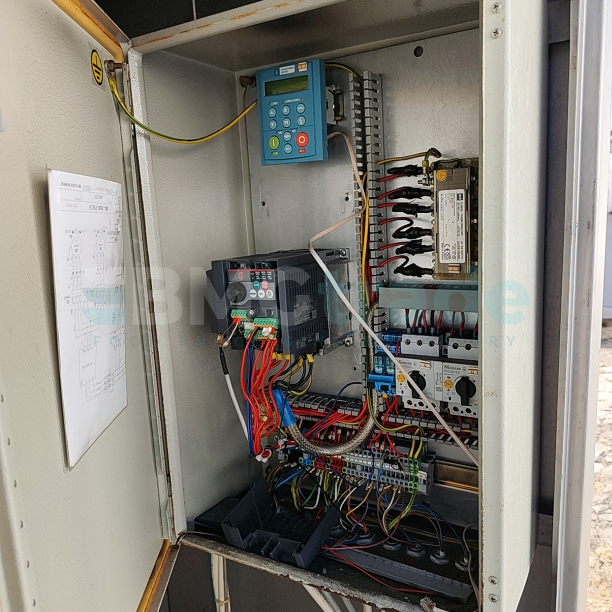 Masownica wyposażona jest w płaszcz chłodzący o mocy 11,1 kW, dzięki czemu w trakcie procesu utrzymywana jest optymalna temperatura produktu – szczególnie ważna przy długich cyklach masowania oraz wysokich wymaganiach jakościowych. Silnik o mocy 5,3 kW oraz zasilanie 3×400 V gwarantują stabilną, niezawodną pracę.
