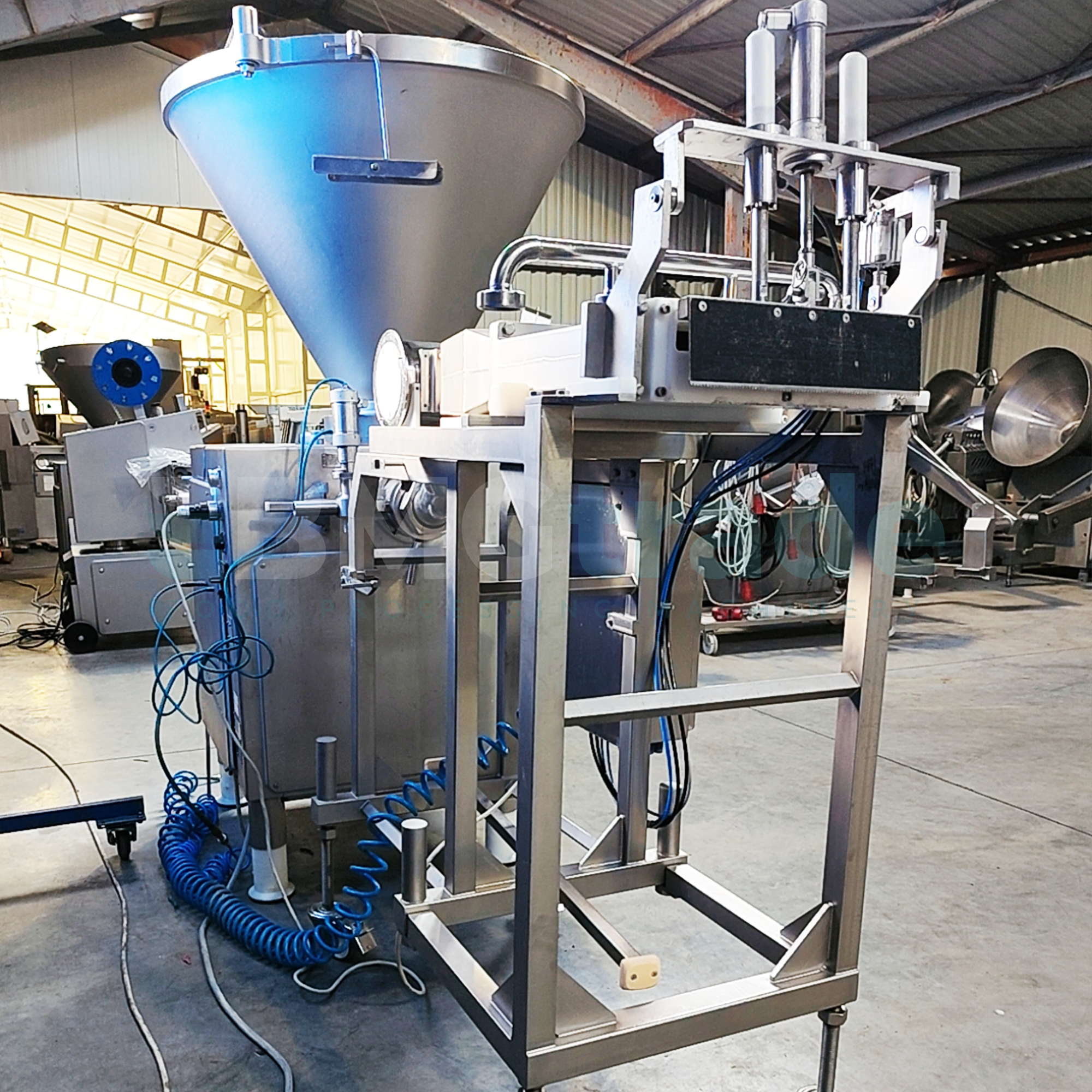 Maszyna VEMAG HP17C, wyprodukowana przez niemiecką firmę VEMAG Maschinenbau GmbH, to niezawodne urządzenie do napełniania mas spożywczych. Dzięki mocy 26 kW i precyzyjnemu systemowi próżniowemu, gwarantuje dokładne porcjowanie przy zachowaniu idealnej konsystencji produktu.